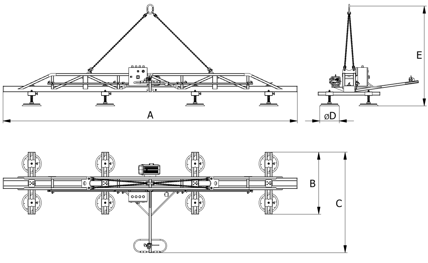 - vacuum tank ensures safe lifting of the load even incase of an unexpected power failure of the air pump