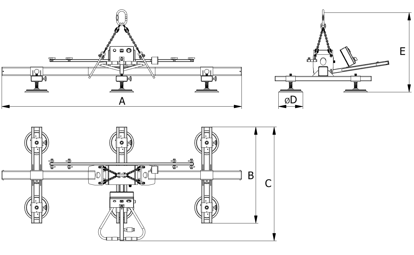 - možnosť ručného odstavenia vákua na všetkých prísavkách pre zmanipulovanie menších bremien